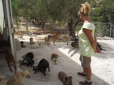 Koirahoitola sijaitsee oliivitarhassa, terasseilla kukkulan rinteellä. Tarha on suuri ja käsittää monta isoa aidattua lohkoa. Sen ulkopuolella meitä odottavat ensimmäiset haukkujat.