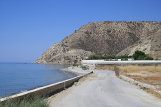 Ajoimme ensin Ierapetrasta Tertsaan, piskuiseen rantakylään. Alkumatka Ierapetrasta länteen ei ole mitenkään idyllinen näkymiltään, sillä rannikon alanko on kirjaimellisesti täynnä muovitettuja kasvihuoneita. Kylännimikyltit seuraavat toisiaan: Gra Ligia, Stomio, Nea Anatoli, Amoudares. Täällä asuu alueen siirtolaisväestöä, kasvihuoneiden työntekijöitä.