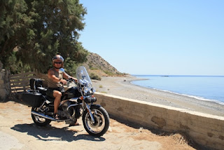 Bensaa ei tarvittu alamäkeen, mutta se riitti kyllä Ierapetraan saakka. Temppelin rauniot sijaitsivat kartan korkeuskäyristä päätellen reilun kilometrin korkeudella, mistä hurottelimme melkein merenpinnan tasoon; ihmekös tuo siis että bensaa kului niin vähän! Ajelimme suorinta reittiä kotiin, koirien luokse, poikkeamatta Tertsan tielle. Mirtoksen kohdalla palasimme meren rantaan.