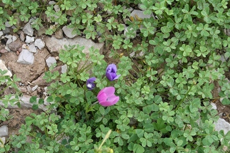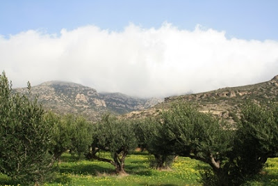 Kukkaset koristavat oliivilehtoja ja vuorten vihreitä rinteitä. Vuokot taitavat olla jo lähes kukkineet, kaikenmallista kakkaraa ja voikukan sukulaista puskee tienpientareilta, mausteena malvikki ja manteli. Melkein unohtaa, että tavalliseen turistiaikaan täällä on niin ruskeaa ja kuivaa.