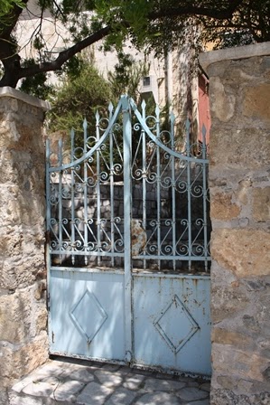 Mekin käytämme hyvän tovin tutkailemalla aitojen takaa suurehkoa, hyväkuntoista taloa, joka on myynnissä. Siinä olisi ihana, villiintymässä oleva puutarha: pari oliivipuuta, useita granaattiomenia sekä todella vanha viiniköynnös ainakin rungon paksuudesta pääteltynä. Rantaan olisi täältä hiukan liian pitkä matka, mutta loiskiiko lähellä joku uima-altaassa? Toisaalta niillekin taisi langeta juuri ylellisyysvero.