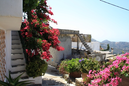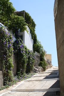 Mutkia, rappusia, talojen väliin katoavia, hämäriä käytäviä, raunioita… ja kaikkialla kukkia ryöppyämässä muurin välitse ja ylitse, villeinä tai ruukkuihin kesytettyinä.