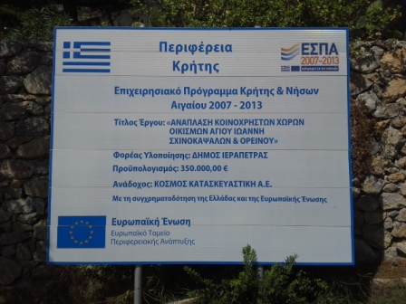 Ihan omin voimin ei kyliä ole tarvinnut asukkaiden kunnostaa, sillä EU:lla on ollut yhdessä Kreikan valtion kanssa kunnostusohjelma, jonka avulla saarten ja syrjäisten alueiden kyliä on laiteltu. Asianmukaiset taulut kertovat ohjelman tiedot, Internetistä löytyy kattavat selostukset toimenpiteistä. Samankaltaisia rahoitettuja kyläohjelmia on ollut Suomessakin, aivan kotiraiteillamme.