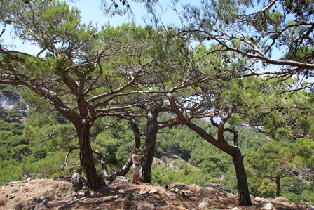 Pinjat luovat läikikkään varjokuvion alleen. Sinne, missä niitä on tiheässä, on muodostunut punaruskea havumatto pudonneista neulasista maan pinnalle. Metsikön harvemmissa kohdissa kanervat ja timjami kilpailevat kasvupaikoista. Kanerva on ihan samannäköistä kuin Suomessa, vain pitkävartisempaa ja isokukkaisempaa. Yllättäen myös timjami kukkii vielä elokuun lopussa, muualla emme ole nähneet kuin rutikuivia, harmaita piikkipalloja.