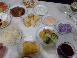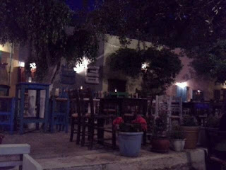 Emme kovinkaan paljon käy varsinaisesti syömässä kaupungilla, koska kokkailemme kotosalla tai kävelemme oman kylämme tavernoihin; kaupunki on asunnostamme automatkan päässä. Ystävien kanssa on käyty kuitenkin istumassa iltaa viinin ääressä, mikä vastaa pientä ateriaa hyvinkin. Oluen tai viinin kyytipoikana on tapana tuoda tarjolle mezedakia, pikku purtavia.
