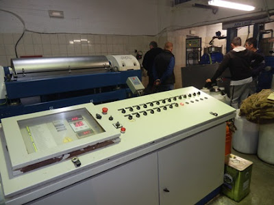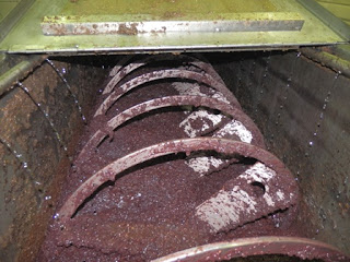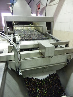 Puristamo on pienen marketin kokoinen laitos. Ensimmäiseksi oliivit puretaan säkeistä hihnalle, joka vie ne pesuun. Tässä vaiheessa loputkin lehdet siivotaan pois ja jäljelle jäävät puhtaat oliivit. Pesukoneesta matka jatkuu murskaamoon, missä ne jauhetaan. Ne sekoitetaan ja lämmitetään suuressa sammiossa, johon mahtuu arviolta tonni oliiveja kerralla.