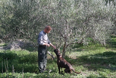Marraskuun puolivälissä havaitsimme, että oman kylämme oliivipuristamo hyrähti käyntiin. Makean hapan, mustikkamainen tuoksu levisi ympäristöön, höyrypilvet pöllähtelivät ja hurina kävi. Öljypuristamolle vieville kujille ryöpsähti avolavapakujen loputon virta. Lastina kahvisäkkeihin pakattuja oliiveja, yleensä niin paljon, että auton jouset ja renkaat olivat lytyssä.