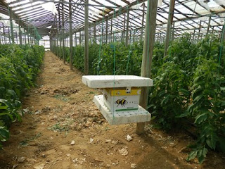 Lissun ja Jorgoksen kanssa pääsimme vierailemaan myös Manolis-serkun kasvihuoneilla upeissa maisemissa, kukkuloilla Ierapetran takana. Raikkaassa ilmanalassa, 180 metrin korkeudessa, pörisevät biologisen viljelmän pikkuapulaiset: varta vasten pölyttäjiksi hankitut kimalaiset. Ne, kuten kasvien siemenet, matkaavat Kreetalle Hollannista. Sieltä tuodaan myös pienen pienet myrkyn korvikkeet, ilmeisesti petopunkin tapaiset otukset, jotka pitävät huolta taimien terveydestä syömällä tuholaisia.
