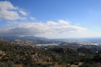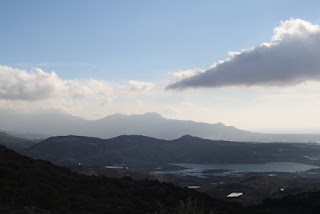 Ja millaisessa ”maisemakonttorissa” saimmekaan työskennellä! Välillä oli ihan pakko pysähtyä ihailemaan näkymiä ja tietysti kaivaa kamerat esille. Pohjoisessa vuorenhuiput peittyivät sinisenmustiin pilviin, joista Mihalis ja Jorgos väittivät par’aikaa satavan lunta. Etelässä aurinko kultasi rannikon, ja Ierapetran talot hohtelivat valkoisina. Turkoosi Bramianan tekojärvi lepäsi alhaalla laaksossa kuin kauneuspilkku ennestään täydellisessä ympäristössä.