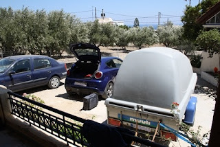 Moni on kysellyt, mitä automatka Kreetalle saakka maksaa, joten nyt vähäsen räknätään. Ajo Koutsounarista Vehmersalmelle 7,7 l / 100 km keskikulutuksella (muistakaa se peräkärry!) tarkoittaa 200 litraa bensiiniä ja euroina vähän vajaata 300 euroa. Tietulleja piti maksaa yhteensä pyöreästi 95 euroa.