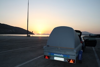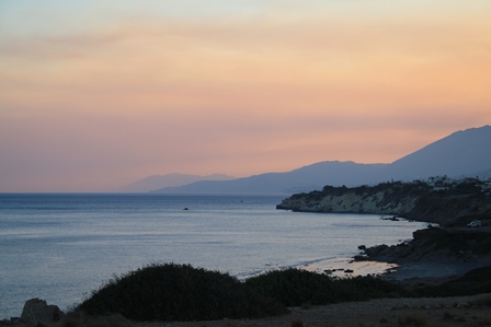 Matka alkoi heinäkuun viimeisenä sunnuntaina iltakuudelta. Ystävämme halusivat vielä tulla vilkuttamaan matkan varrelle, joten ensimmäinen etappi oli Ierapetran sunnuntaiaution Marinopoulos-marketin parkkipaikka. Kyynelehtimistä ja lämpimiä halauksia. Pikaisen paluun toivotuksin ja toivomuksin lähdimme ajamaan kohti auringonlaskua.