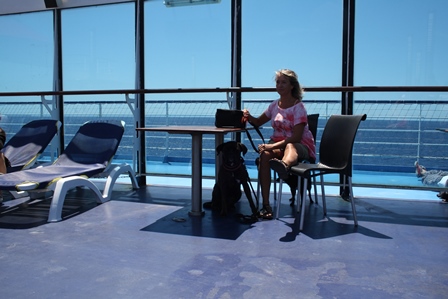 Ensimmäinen yö meni aikataulun mukaisesti, Minoan Palace lähti laiturista kello kymmenen. Tuttuun ylelliseen tapaan piccolo saattoi meidät hyttiin, koirinemme kaikkinemme. Unikin tuli yllättävän helposti.